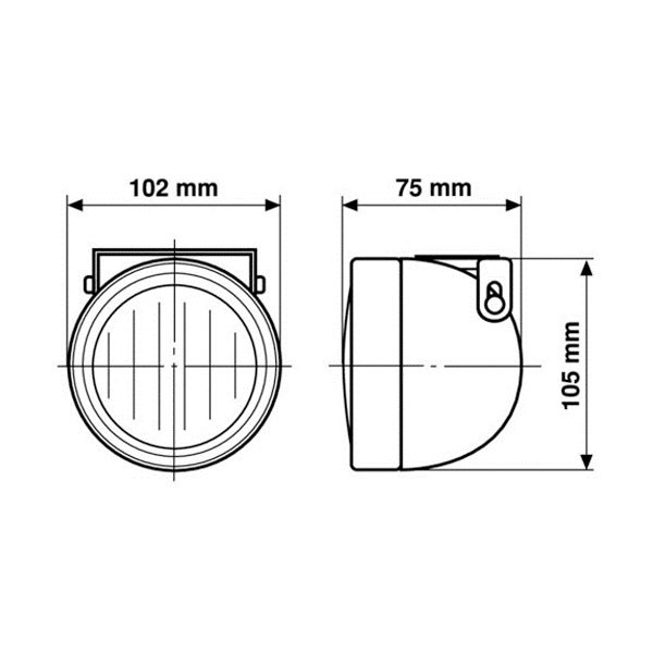 Faro antiniebla en placa de montaje. Incluye bombilla halógena H3. Faros con opción de inclinación. Profundidad: 75 mm. Diámetro: 102 mm.