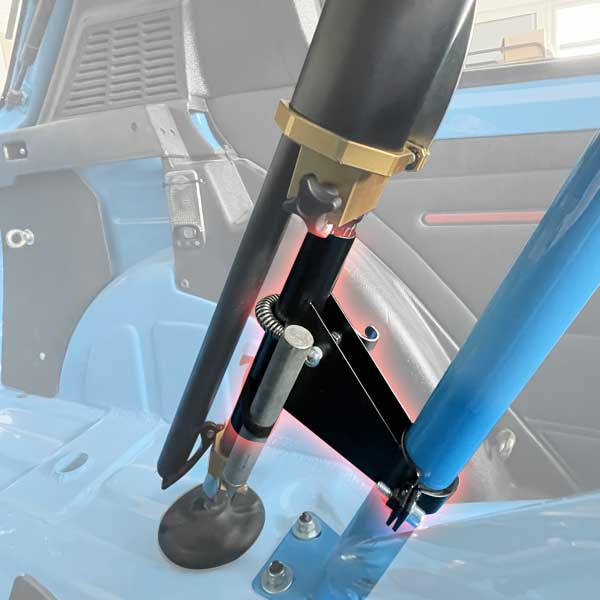 Muy fácil de instalar, el soporte de gato de a bordo universal RRS se adapta a barras antivuelco de 40 a 50 mm.